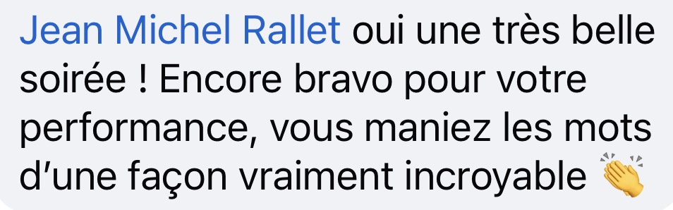 On trouve in extremis une solution et malgré quelques couacs qui feront de cette soirée un moment inoubliable… les rires et l’émotion ont été au rendez vous !